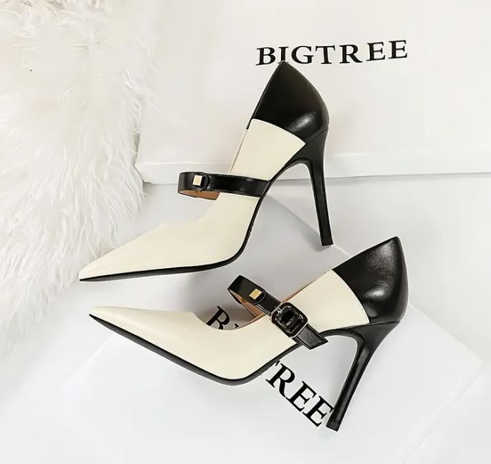 Elegant Two-Tone Stilettos with Chic Strap Design. Shop Now & Elevate Your Style!